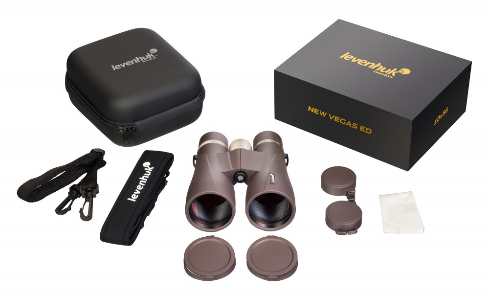 Бинокль Levenhuk New Vegas ED 10x56 станет отличным подарком для охотника, путешественника, натуралиста или любителя активного отдыха далеко за городом. При помощи него как начинающие, так и продвинутые пользователи смогут рассмотреть окружающий мир в деталях, изучить незнакомую местность, определить ориентиры и проложить дорогу, а также понаблюдать за дикими животными и птицами с безопасного расстояния. Бинокль подходит для работы на средних и средне-дальних дистанциях и может использоваться для обзорных и прицельных наблюдений – в этом помогут 10-кратное увеличение и поле зрения 6,5°. Эффективной работе при любом уровне освещения, включая пасмурную погоду или сумерки, способствуют светосильные объективы с апертурой 56 мм и многослойное просветляющее покрытие, нанесенное на линзы и призмы.